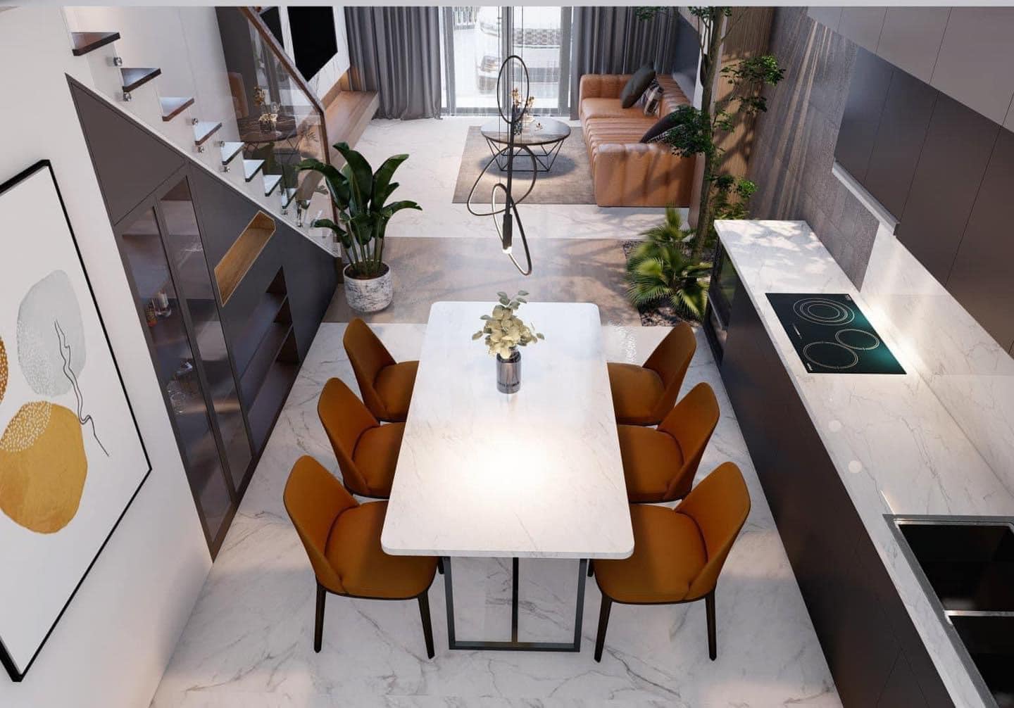 - Kết nối phòng khách, bếp và khu ăn uống giúp tạo cảm giác rộng rãi.