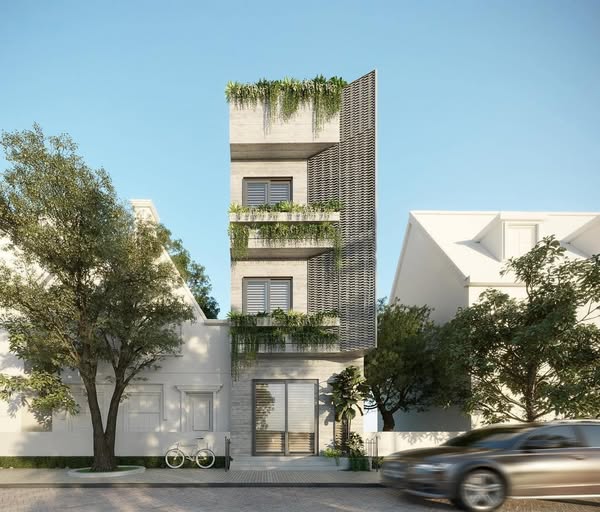 • Những mảng trang trí decor như cây xanh giúp mặt tiền thêm phần tinh tế và gần gũi thiên nhiên.
