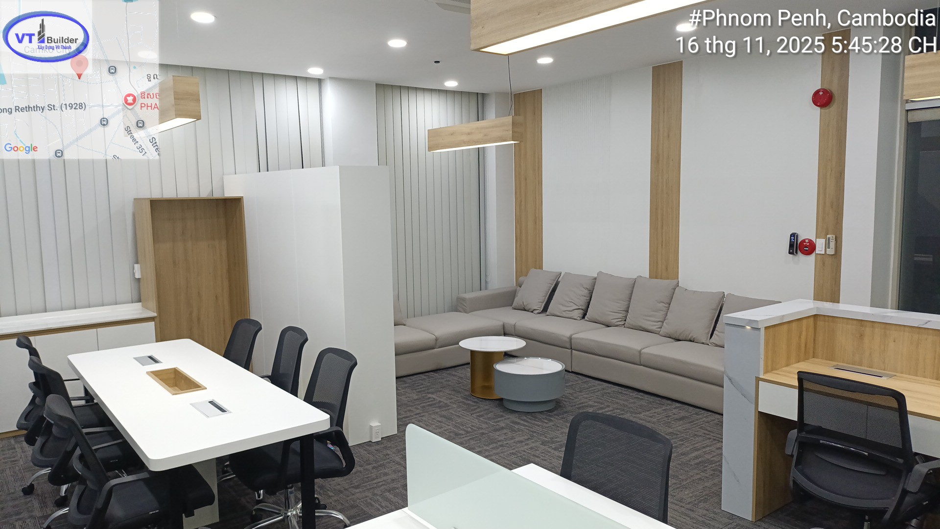 Xây Dựng Vũ Thành là đơn vị thi công xây dựng và hoàn thiện nội thất chuyên nghiệp tại Phnom Penh, Cambodia. Với đội ngũ kỹ thuật tay nghề cao, quy trình làm việc bài bản, chúng tôi mang đến không gian làm việc hiện đại, thẩm mỹ và tối ưu công năng cho doanh nghiệp. Các hình ảnh thi công thực tế dưới đây thể hiện rõ quy trình làm việc minh bạch, chuyên nghiệp và tận tâm trong từng hạng mục.