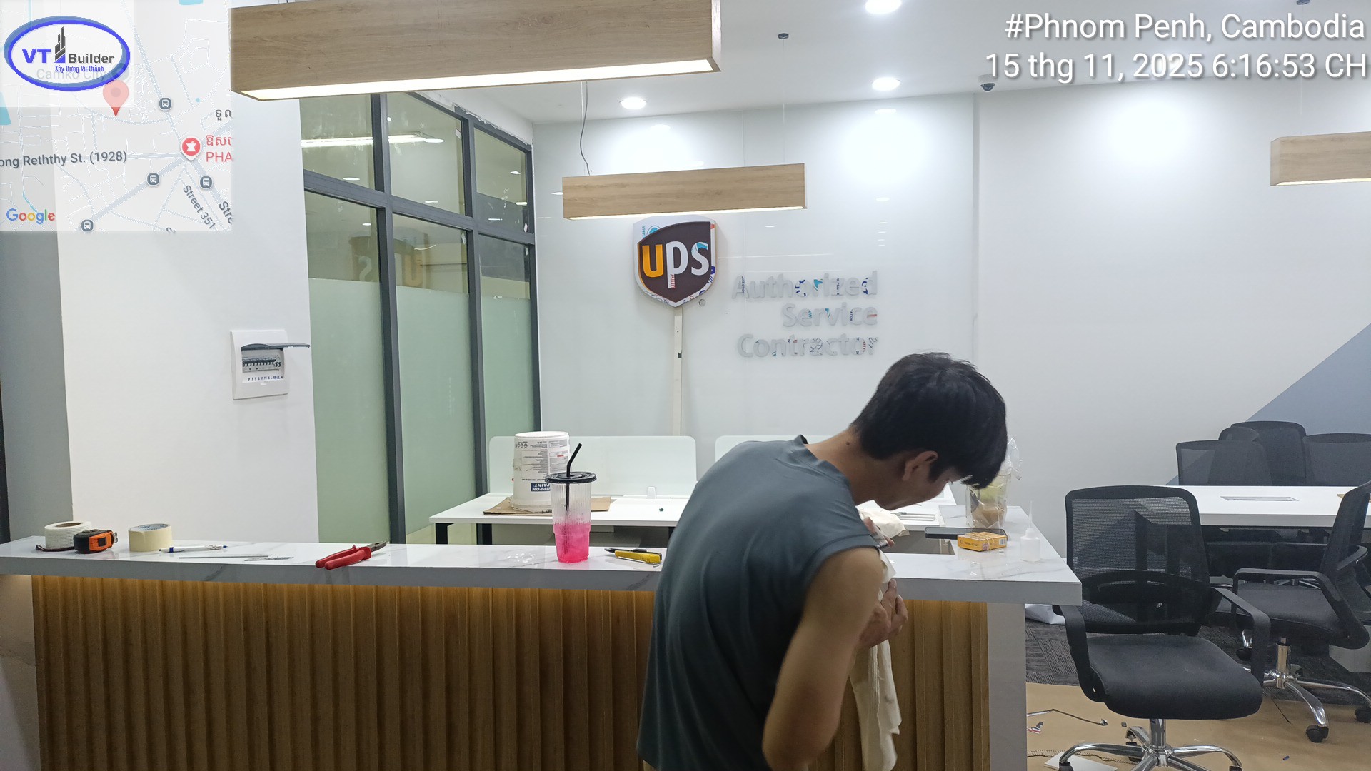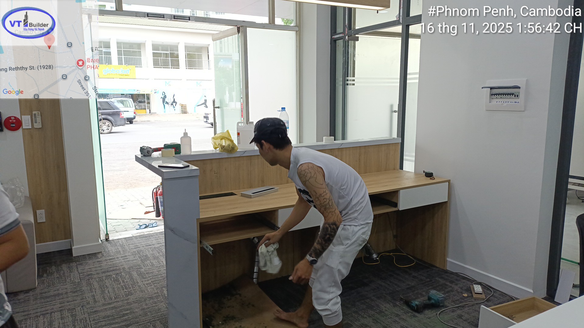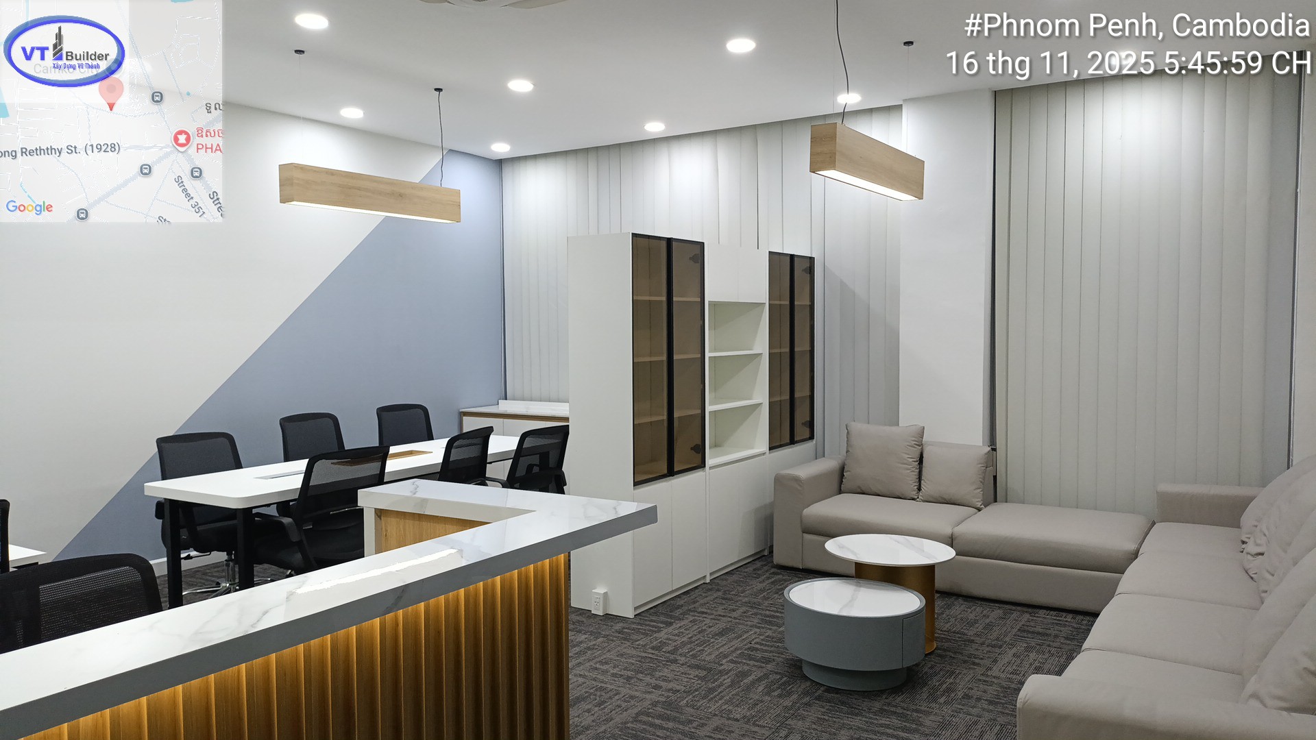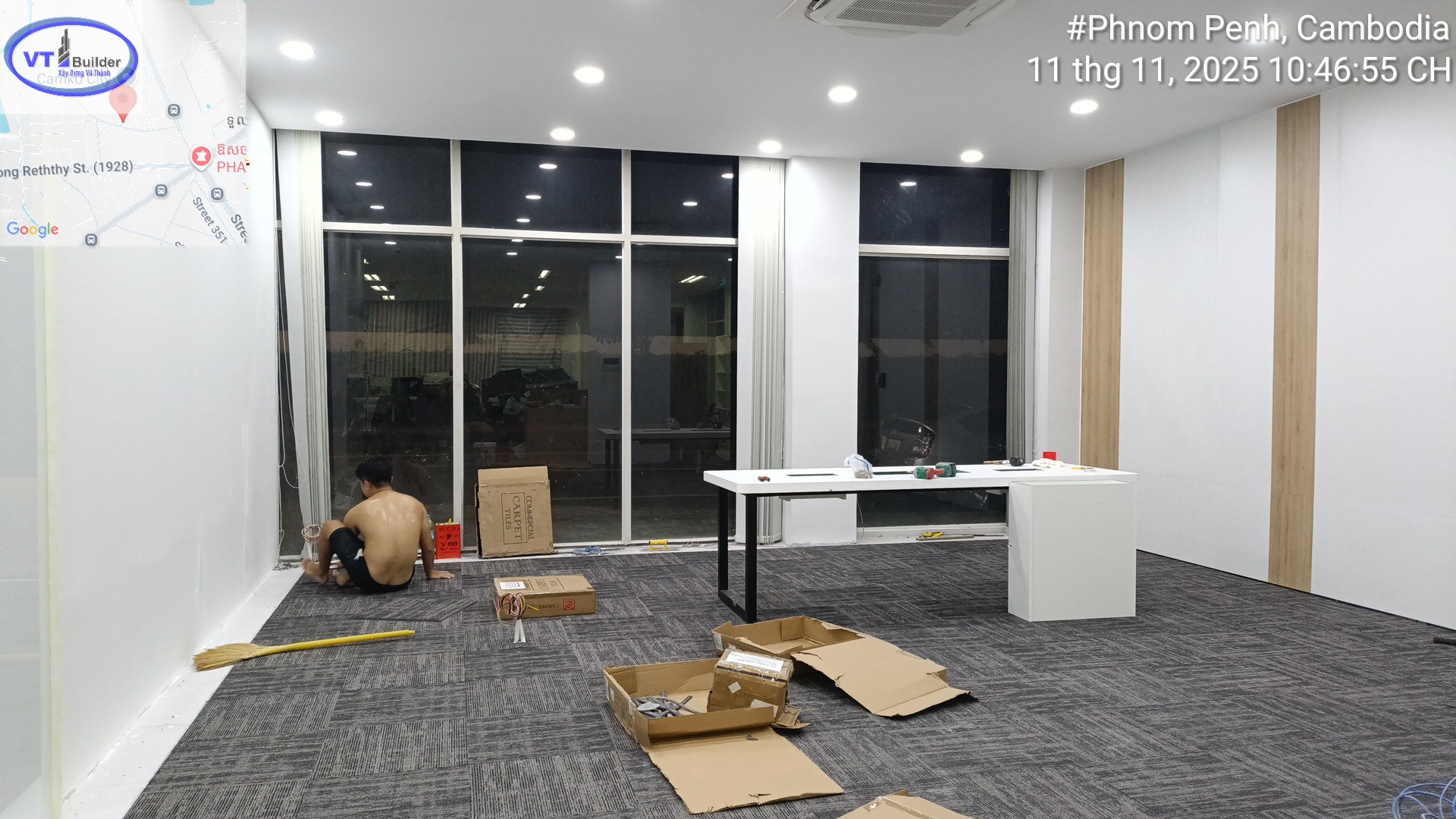 Xây Dựng Vũ Thành là đơn vị thi công xây dựng và hoàn thiện nội thất chuyên nghiệp tại Phnom Penh, Cambodia. Với đội ngũ kỹ thuật tay nghề cao, quy trình làm việc bài bản, chúng tôi mang đến không gian làm việc hiện đại, thẩm mỹ và tối ưu công năng cho doanh nghiệp. Các hình ảnh thi công thực tế dưới đây thể hiện rõ quy trình làm việc minh bạch, chuyên nghiệp và tận tâm trong từng hạng mục.